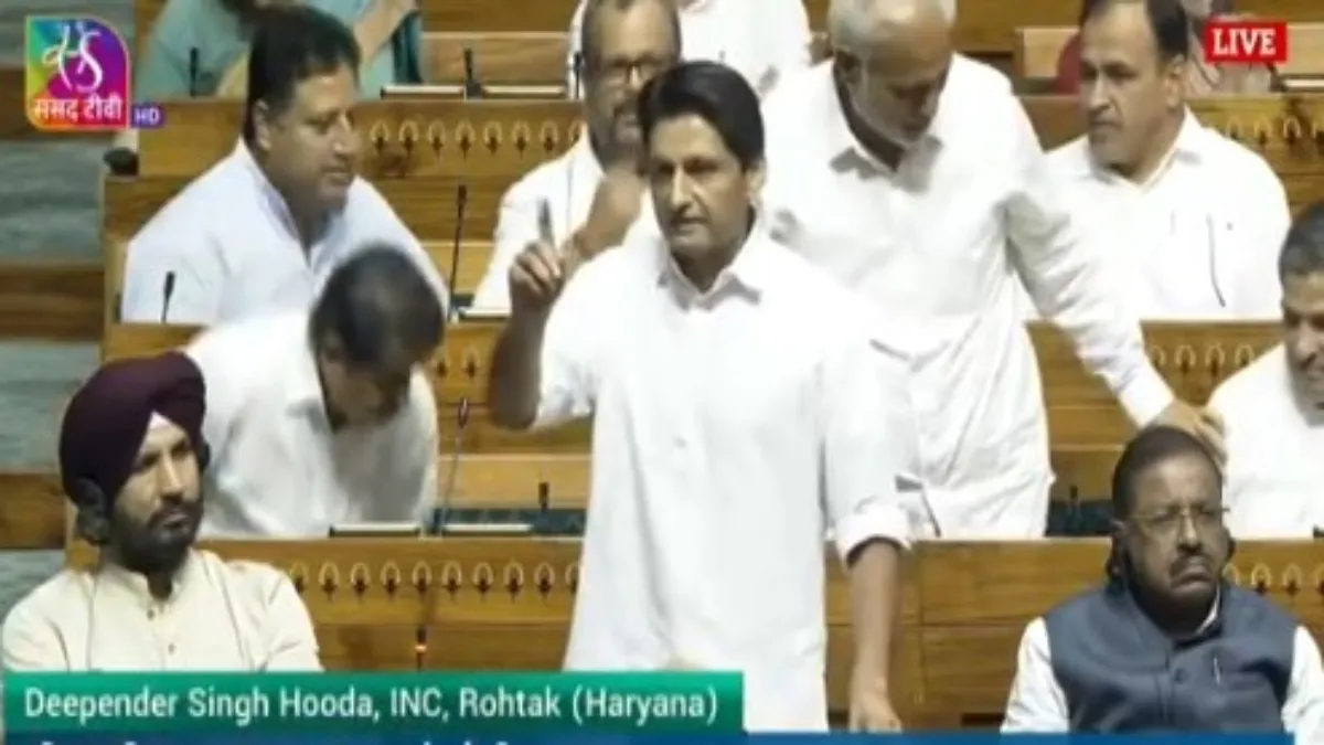 सदन में ऑपरेशन सिन्दूर पर बोलते हुए कांग्रेस सांसद दीपेंद्र सिंह ने कहा, "...डोनाल्ड (ट्रम्प) को चुप कराओ, डोनाल्ड का मुंह बंद कराओ या फिर हिंदुस्तान में मैकडॉनल्ड्स को बंद कराओ..." कांग्रेस नेता दीपेंद्र हुड्डा ने सोमवार को कहा कि सरकार ने केवल आतंकी ढांचे को निशाना बनाकर और पाकिस्तानी सेना पर हमला न करके ऐतिहासिक भूल की है। बहस के दौरान, हरियाणा के सांसद ने कहा कि पाकिस्तानी सेना पर हमला न करना "एक तरह से इस्लामाबाद को क्लीन चिट" देना था।