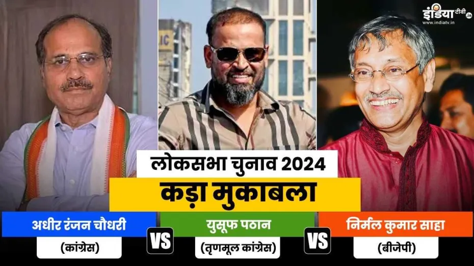 लोकसभा चुनावों की तारीखों का ऐलान हो चुका है और तमाम सीटों पर अब कांटे की लड़ाई नजर आने लगी है। ऐसी ही सीटों में पश्चिम बंगाल की बहरामपुर लोकसभा सीट भी शामिल है। इस सीट पर एक या दो नहीं बल्कि 3-3 दिग्गजों के बीच कांटे की टक्कर की संभावना जताई जा रही है। बहरामपुर से कांग्रेस के टिकट पर कद्दावर नेता अधीर रंजन चौधरी मैदान में हैं, जबकि तृणमूल कांग्रेस ने पूर्व अंतरराष्ट्रीय क्रिकेटर युसूफ पठान को अपना उम्मीदवार बनाया है। वहीं, इस सीट पर इतिहास बदलने की कोशिश कर रही बीजेपी की उम्मीदें अपने कैंडिडेट निर्मल कुमार साहा पर टिकी हैं।