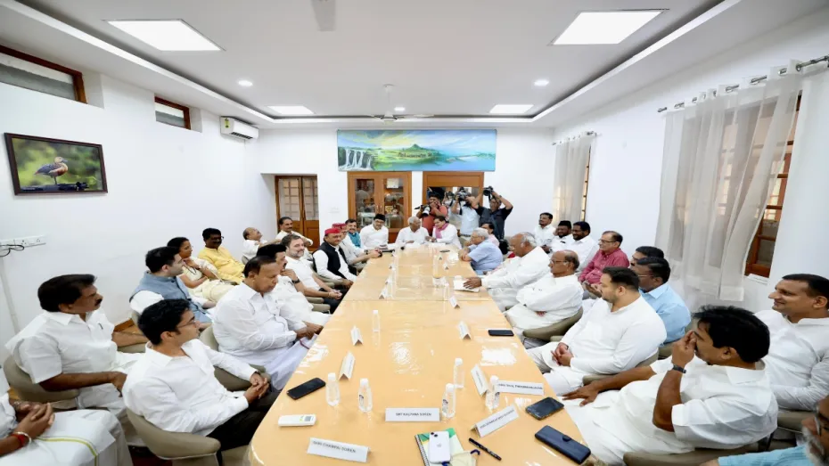 चुनाव रिजल्ट के बाद इंडिया गठबंधन को कुल 234 सीटें मिली हैं, जो सरकार बनाने के लिए काफी नहीं है। बहुमत से कम सीटें भले ही मिली हों लेकिन गठबंधन में शामिल सभी पार्टियों के नेताओं का जोश दोगुना दिख रहा है। रिजल्ट आने के बाद गठबंधन की बुधवार को अहम बैठक हुई जो कांग्रेस अध्यक्ष मल्लिकार्जुन खरगे के आवास पर आयोजित थी। बैठक में कांग्रेस अध्यक्ष खरगे ने कहा कि INDIA गठबंधन उन सभी राजनीतिक दलों का स्वागत करता है जो भारत के संविधान के प्रस्तावना में अटूट विश्वास रखते हैं, और इसके आर्थिक, सामाजिक और राजनीतिक न्याय के उद्देश्यों के लिए प्रतिबद्ध हैं।