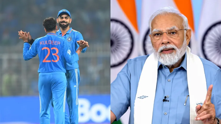 वनडे विश्वकप 2023 में भारतीय टीम का विजय रथ सभी को हराते हुए आगे बढ़ता जा रहा है। रविवार को कोलकाता के इडेन गार्डेंस में खेले गए मुकाबले में भारत ने साउथ अफ्रीका की टीम को 243 रनो के बड़े अंतर से हरा दिया है। भारत की इस जीत पर प्रधानमंत्री नरेंद्र मोदी भी गदगद हो गए हैं। उन्होंने भारतीय टीम की जमकर तारीफ की है।