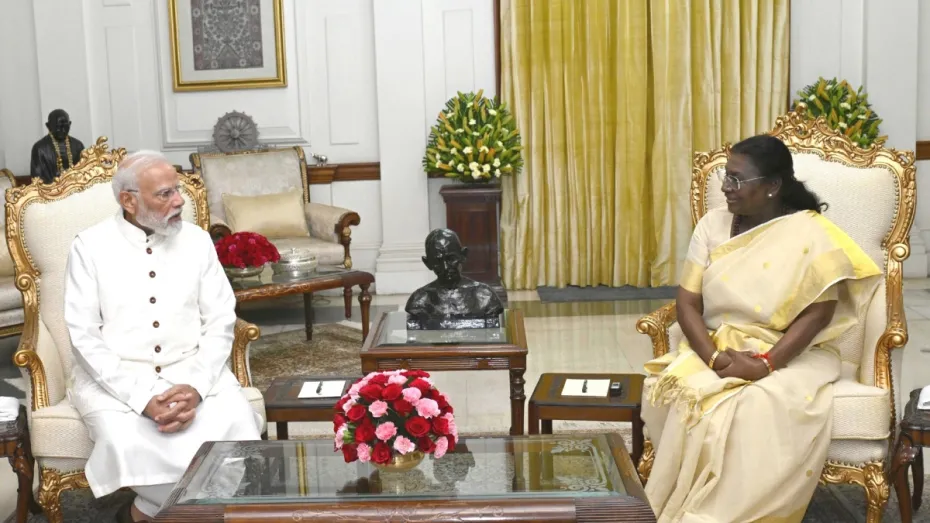 प्रधानमंत्री नरेंद्र मोदी ने राष्ट्रपति भवन में राष्ट्रपति द्रौपदी मुर्मू से मुलाकात की और दिवाली की शुभकामनाएं दीं। राष्ट्रपति मुर्मू ने एक सोशल मीडिया पोस्ट में लिखा, "प्रधानमंत्री नरेंद्र मोदी ने राष्ट्रपति भवन में राष्ट्रपति द्रौपदी मुर्मू से मुलाकात की और दिवाली की शुभकामनाएं दीं।" इससे पहले राष्ट्रपति द्रौपदी मुर्मू ने देशवासियों को दिवाली की शुभकामनाएं दीं। राष्ट्रपति मुर्मू ने एक पोस्ट शेयर करते हुए एक्स पर लिखा, "दिवाली के पावन अवसर पर मैं भारत और दुनिया भर में सभी भारतीयों को हार्दिक बधाई और शुभकामनाएं देती हूं।"