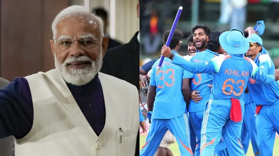 ICC Under 19 World Cup 2026 के फाइनल में शानदार जीत के लिए PM मोदी ने टीम इंडिया को बधाई दी है। फाइनल में टीम इंडिया ने इंग्लैंड को पटखनी दी है। भारतीय खिलाड़ियों ने अंग्रेजों को पूरे 100 रन से हरा दिया। इस मैच में वैभव सूर्यवंशी ताबड़तोड़ 175 रनों की पारी खेली और इंग्लिश खिलाड़ियों के छक्के छुड़ा दिए। टीम इंडिया की तारीफ में PM मोदी ने सोशल मीडिया पर प्लेटफॉर्म एक्स पर पोस्ट किया और कहा कि भारत का क्रिकेटिंग टैलेंट चमक रहा है।