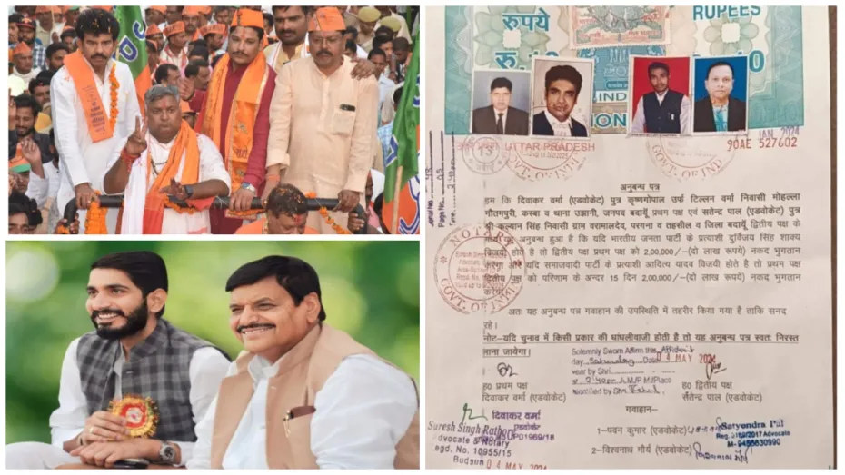 दरअसल भारतीय जनता पार्टी ने बदायूं की लोकसभा सीट से दुर्विजय सिंह शाक्य को उम्मीदवार बनाया है। वहीं समाजवादी पार्टी ने शिवपाल यादव के बेटे आदित्य यादव को यहां से उम्मीदवार बनाया है। दरअसल उझानी कोतवाली क्षेत्र के उझानी कस्बे के गौतमपुर मोहल्ले के रहने वाले दिवाकर वर्मा अधिवक्ता हैं और कचहरी में वकालत करते हैं। वह भाजपा समर्थक हैं। वहीं उझानी कोतवाली क्षेत्र के बरामालदेव गांव के रहने वाले सत्येंद्र पाल भी कचहरी में वकालत करते हैं जो समाजवादी पार्टी के समर्थक हैं। दोनों अधिवक्ताओं ने अपने-अपने प्रत्याशी की जीत पर दो-दो लाख की शर्त लगा दी है।