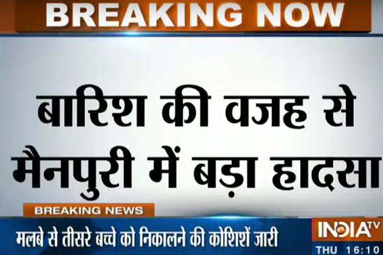 मैनपुरी: यूपी के मैनपुरी में बारिश की वजह से मंदिर की दीवार ढह गई। दीवार के मलबे में तीन बच्चे दब गए जिसमें से दो बच्चों के शव निकाल लिए गए हैं और एक बच्चे को निकालने की कोशिश लगातार जारी है।