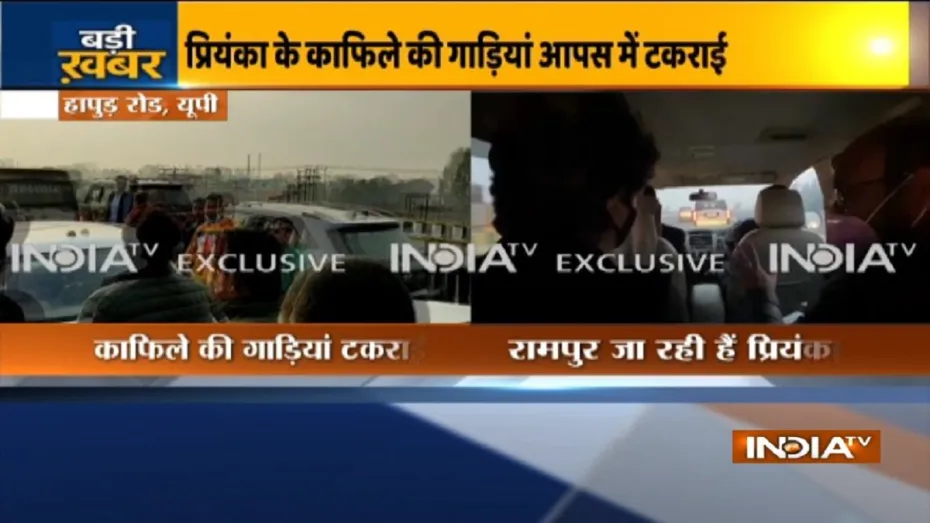 नई दिल्ली: रामपुर जा रहीं कांग्रेस महासचिव प्रियंका गांधी के काफिले की गाड़ियां हापुड़ रोड पर टकरा गई हैं। प्रियंका गांधी 26 जनवरी को दिल्ली में हुई हिंसा के दौरान मृत किसान नवरीत के परिजनों से मिलने रामपुर जा रही हैं। इसी दौरान प्रियंका के काफिले की गाड़ियां आपस में टकरा गईं। हालांकि प्रियंका गांधी इस हादसे में सुरक्षित हैं। प्रियंका गांधी किसान नवरीत सिंह के परिजनों से मिलने और शोक संवेदना व्यक्त करने के लिए उत्तर प्रदेश के रामपुर जा रही हैं। इसी दौरान उनके काफिले की गाड़ियां आपस में टकरा गईं।