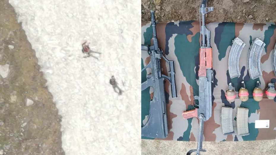 दरअसल, भारतीय सेना के सतर्क जवानों ने एलओसी के भारतीय हिस्से में घनी झाड़ियों के बीच दो आतंकवादियों की आवाजाही देखी थी। जब आतंकियों को रोकने की कोशिश की गई तो उन्होंने गोलीबारी शुरू कर दी। इसके बाद दोनों ओर से काफी गोलियां चलीं। इस पूरे ऑपरेशन में दो आतंकवादी मार गिराए गए। सेना ने मारे गए आतंकियों की तस्वीर भी जारी की है। इस तस्वीर में दो आतंकी जमीन पर मरे पड़े हुए दिखाई दे रहे हैं।