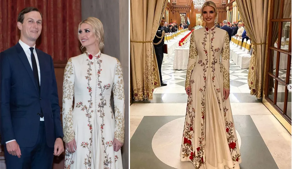 भारत दौरे पर आए अमेरिका के राष्ट्रपति डोनाल्ड ट्रंप की बेटी इवांका ट्रंप पूरे दौरे के दौरान अपने ड्रेसिंग स्टाइल को लेकर चर्चा में रहीं। बीती रात राष्ट्रपति भवन में रामनाथ कोविंद द्वारा आयोजित किए गए स्पेशल डिनर पर इवांका ट्रंप ट्रेडिशनल अवतार में पहुंची तो लोगों की निगाहें उन पर ही जा टिकीं। इवांका ने भारतीय डिजाइनर रोहित बल के कलेक्शन को पहना था। राष्ट्रपति भवन में अपने लुक को लेकर इवांका हर किसी को इंप्रेस करने में कामयाब हो गई।