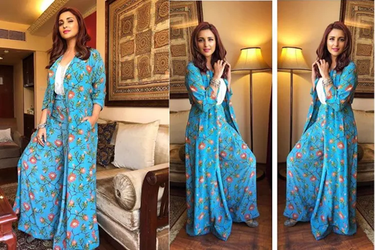 नई दिल्ली: एक्ट्रेस परिणीति चोपड़ा इन दिनों अपनी आने वाली फिल्म नमस्ते इग्लैंड के प्रमोशन में काफी बीजी दिख रही हैं। सिर्फ इतना ही नहीं फिल्म के प्रमोशन के दौरान परिणीति के अंदाज भी काफी बदले नजर आ रहे हैं। इन दिनों परिणीति अपनी लुक को लेकर काफी एक्सपेरीमेंट कर रही हैं और ये लुक काफी अच्छा भी लग रहा है। परिणीति को हाल ही में एक इवेंट के दौरान ब्लू ट्रंच कोर्ट में नजर आई। ये ड्रेस परिणीति पर काफी अच्छा लग रहा था। इस ड्रेस को संजना बतरा ने डिजाइन किया था। इस ड्रेस के साथ परिणीति ने आम्रपाली चुड़ियां और ज्वेलरी पहनी थी। और मेकअप वर्दन नायक और हेयर स्टाइल गौहर शेख ने किया था।