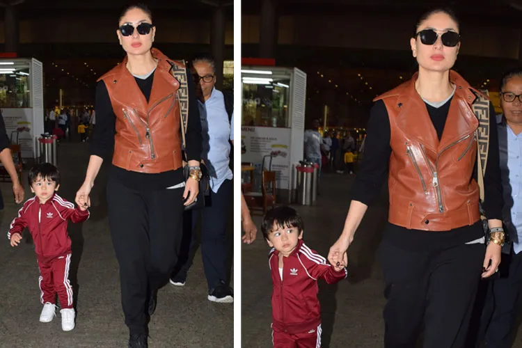 इस एयरपोर्ट लुक में तैमूर लाल रंग के जॉगर्स सूट में बेहद क्यूट लग रहे थे। करीना कपूर खान मरुन कलर के लेदर जैकेट, ब्लैक सनग्लासेज और ब्लैक बूट्स में कूल और स्टाइलिश लुक में नजर आईं। इन फोटोज में तैमूर और करीना काफी एनर्जेटिक लग रहे हैं।