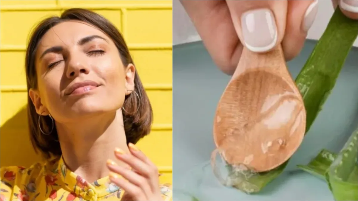 इस साल मार्च के महीने में ही भीषण गर्मी की शुरुआत हो चुकी है। ऐसे में अपने स्किन केयर को लेकर आपको सावधान हो जाना चाहिए। स्किन को रैश हीट और ड्राई होने से बचाने के लिए ज़रूरी है कि अपने स्किन केयर रूटीन में कुछ ऐसे चीजों को शामिल करें जो चेहरे की नमी और हाइड्रेशन को बनाए रखे। अगर आप भी गर्मियों में त्वचा की नमी बनाए रखना चाहते हैं, तो रोज रात को सोने से पहले एक खास हरी पत्ती का जेल लगाना आपके लिए काफी फायदेमंद साबित हो सकता है। यह हरी पत्ती है एलोवेरा, जिसे त्वचा की देखभाल के लिए बेहद असरदार माना जाता है। चलिए जानते हैं गर्मी के मौसम में रात में एलोवेरा जेल लगाने से चेहरे को कौन से फायदे मिलेंगे?