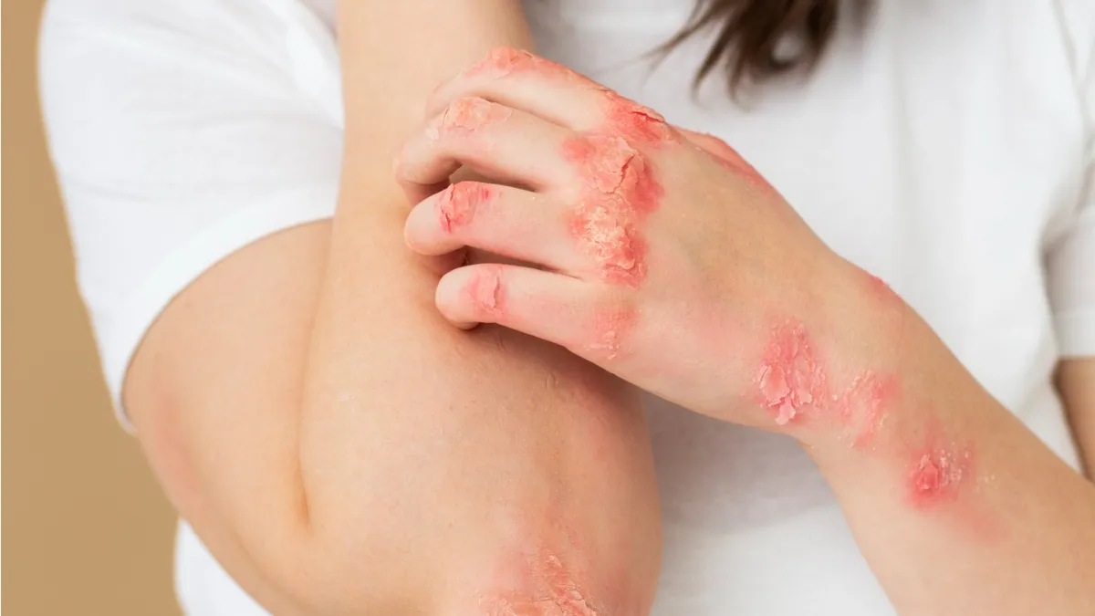 कई बार हमारे शरीर पर खुजलीदार और पपड़ीदार स्किन दिखने लगती है। यह समस्या ज़्यादातर सिर, कोहनी, चेहरे, कान के आसपास और घुटनों पर दिखाई देती है। इस स्थिति को सोरायसिस कहते हैं. पीएसआरआई अस्पताल में स्किन एक्सपर्ट डॉ. भावुक धीर कहते हैं कि सोरायसिस में त्वचा पर लाल चकत्ते, सूजन और सफेद परतें जमने लगती हैं। यह रोग संक्रामक नहीं है, लेकिन लंबे समय तक परेशान कर सकता है। यह कंडीशन पूरी तरह से खत्म नहीं होता है लेकिन इसे कंट्रोल किया जा सकता है.