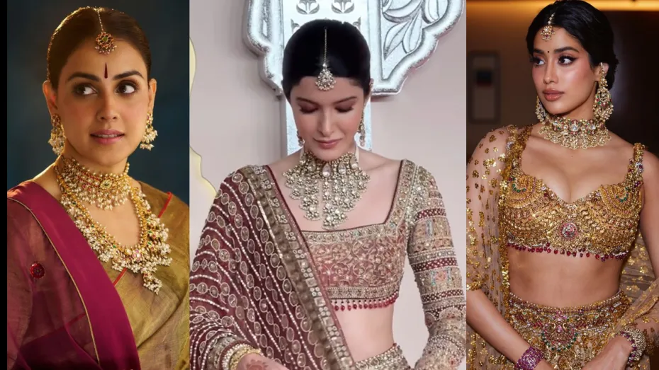 90 के दशक में पतले और लटकन वाले मांग टीका फैशन में थे। माधुरी दीक्षित से लेकर जूही चावला, करिश्मा कपूर और रवीना टंडन कई फिल्मों में ऐसे टीका पहने नजर आ जाएंगी। लेकिन पिछले 8-10 सालों से बड़े और फूल वाले चौड़े माथा पट्टी का चलन था। इस मांगटीका को थोड़ा नीचे की ओर पहना जाता है। लेकिन अनंत राधिका की शादी में ज्यादातर लोगों ने पतले और छोटे मांगटीका पहने थे, जिसे देखकर आपको 90s का फैशन याद आ जाएगा।