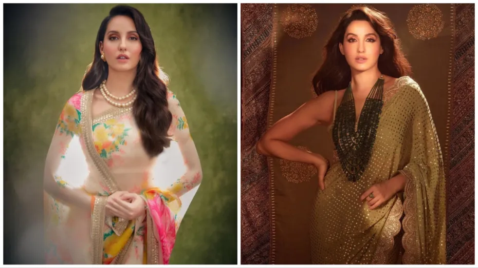 बॉलीवुड एक्ट्रेस और डांसर नोरा फतेही अपने डांस के अलावा फैशन सेंस की वजह से भी सुर्खियों में बनी रहती हैं। वेस्टर्न आउटफिट हो या फिर इंडियन, सभी में नोरा फतेही बेहद खूबसूरत लगती हैं। सोशल मीडिया पर एक्टिव रहने वालीं Nora Fatehi अक्सर अपनी फोटोज शेयर करती रहती हैं। यहां हम आपके लिए नोरा फतेही के साड़ी लुक्स (Nora Fatehi Saree Looks) लेकर आए हैं जिनसे आप भी इंस्पिरेशन ले सकती हैं। नोरा के ये लुक्स स्टाइलिश और बेहद खूबसूरत हैं।