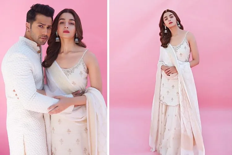 आलिया भट्ट के अलावा वरुण धवन भी प्रमोशन में व्हाइट कलर के शेरवानी में नजर आएं।