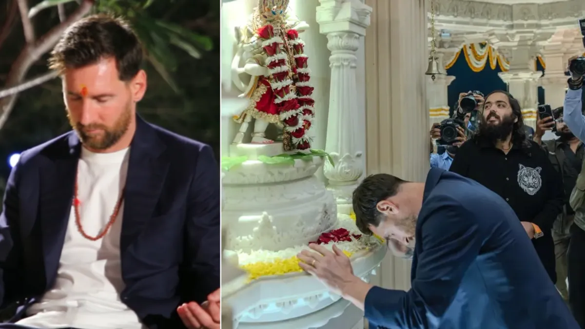 फुटबॉल के दिग्गज मेसी ने मंदिर में 'महाआरती' में भाग लिया, जिसमें अंबे माता पूजा, गणेश पूजा और हनुमान पूजा की। मेसी ने भगवान गणेश के चरणों में अपना सिर झुकाया और जय माता दी का जयकारा भी लगाया। इसके बाद मेसी ने शिवलिंग अभिषेक किया जिसमें जल, दूध, बेलपत्र और फूल माला चढ़ाकर भोलेशंकर का अशीर्वाद लिया। मेसी,लुइस सुआरेज और रोड्रिगो ने अनंत अंबानी के साथ मिलकर हर-हर महादेव का जोरदार जयकारा लगाया।