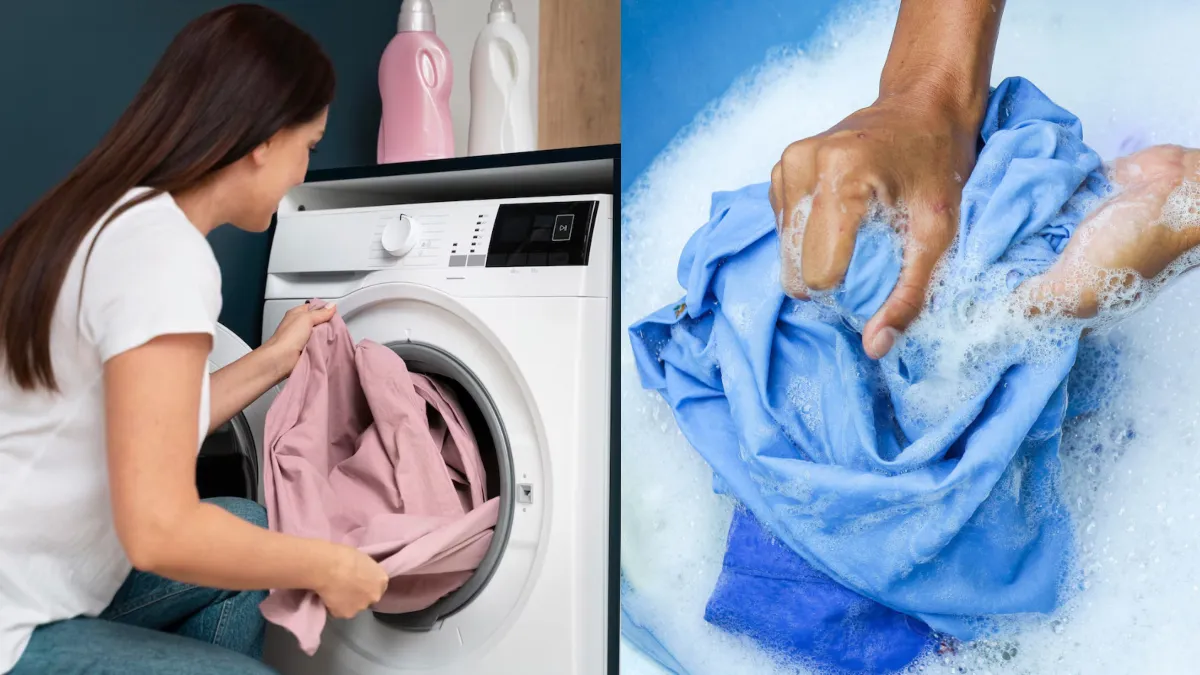 हाथ से धोने वाले कपड़े- अगर आपके कुछ कपड़े रंग छोड़ते हैं तो उन्हें हाथ से और एकदम अलग से धोना चाहिए। सफेद कपड़ों को हाथ से धाएंगे तो अच्छा है। ऑफिस जाने वाले कपड़े ज्यादा गंदे नहीं होते हैं उन्हें हैंड वॉश ही करें। सॉफ्ट कॉटन टॉप, लेनिन की शर्ट हमेशा हाथ से धोनी चाहिए। हल्के वर्क वाले सूट, कुर्ते भी हैंड वॉश करने चाहिए। काले कपड़ों को भी चाहें तो हैंड वॉश कर सकते हैं। हाथ से धोने से कपड़ों की शाइन बनी रहती है। इससे कपड़े का रंग जल्दी फेड नहीं होता है।