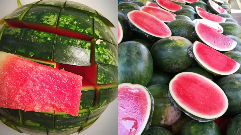 एकदम हरे तरबूज से कहीं ज्यादा स्वादिष्ट और मीठा तरबूज हरे रंग और पीले रंग की धारियों वाला तरबूज होता है। धारी वाला तरबूज चीनी की तरह मीठा और लाल होता है।