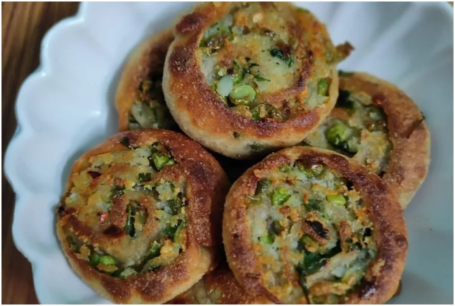 सबसे पहले आटे में पानी डालकर उसे मल लें। आटा मुलायम ही रखें। अब आटे की लोई लें और उसे रोटी की तरह बेल लें। दूसरी तरफ उबले हुए आलू में उबली हुई मटर, कटा हुआ हरा धनिया, चाट मसाला, नमक, हरी मिर्च, थोड़ी सी कुटी लाल मिर्च डाल दें। अब इन सब चीजों को अच्छी तरह से मिला लें। अब इस डोब को जो आपने रोटी बेली है उस पर एक पतली लेयर की तरह फैला दें। इसके बाद इस रोटी को मोड़ लें।