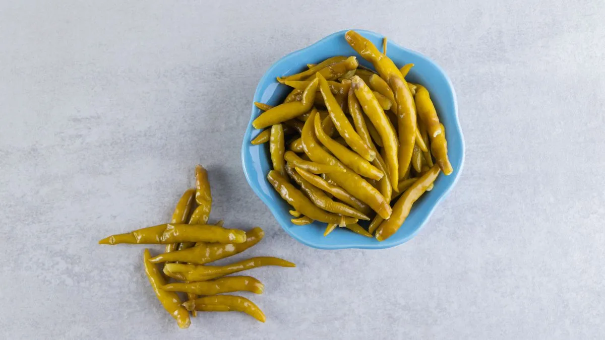 Hari Mirch ka Paani Wala Achar Recipe: खाने के साथ अगर अचार मिल जाए तो भोजन का स्वाद बढ़ जाता है। खासकर तब जब हरी मिर्च का अचार प्लेट में परोसा जाए। हरी मिर्च का अचार खान में स्वादिष्ट होने के साथ साथ चटपटा भी होता है। हालांकि कई लोग इसे काफी तेल मसालों के साथ तैयार करते हैं जिससे ये थोड़ा अनहेल्दी हो जाता है। ऐसे में आप हरी मिर्च का पानी वाला अचार स्वाद के साथ साथ सेहत के भी फायदेमंद होता है। राजस्थानी हरी मिर्च का पानी वाला अचार जिसे ‘कांजी मिर्च’ भी कहा जाता है बनाना काफी आसान है और इसका स्वाद काफी जुदा होता है। अगर आप भी बिना तेल के मिर्च का अचार तैयार करना चाहते हैं तो हरी मिर्च का पानी वाला अचार बना सकते हैं। यहां से नोट कर लें ‘कांजी मिर्च’ की आसान सी रेसिपी।