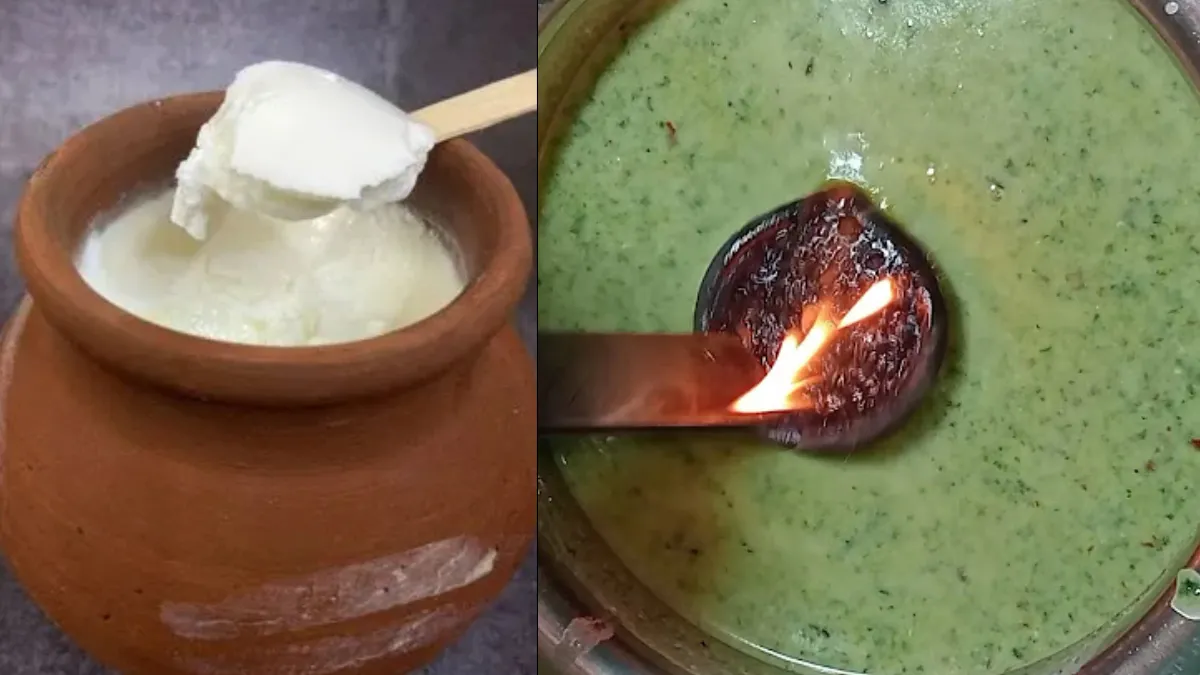 बथुए का रायता- सर्दियों में अगर आपको दही या रायता खाना है तो उसमें ऐसी चीजें डालें जिससे उसकी तासीर गर्म हो जाए। ठंड के दिनों में बथुए का रायता बनाकर खाएं। इसके लिए दही को पतला कर लें। अब बथुआ उबाल लें और पीसकर रायते में मिक्स कर दें। बथुआ बहुत गर्म होता है जो दही की तासीर को बैलेंस करने का काम करता है। इसलिए सर्दियों में बथुए का रायता खाकर शरीर को गर्म रखा जा सकता है। बथुआ के रायते में लहसुन, जीरा, लाल मिर्च का तड़का लगाकर खाएं।