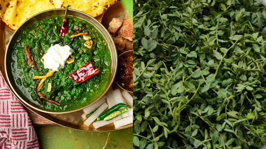 दूसरा स्टेप- अब एक कुकर या किसी पैन में चने का साग, अदरक, हरी मिर्च और हींग डालकर साग में 1 बड़ा कप पानी डालकर उबलने के लिए रख दें। साग को मीडियम फ्लेम पर गलने तक पकाना है। जब साग पक जाए तो मक्के के आटे को पानी में डालकर एक पतला घोल बना लें। इस घोल को साग में डालकर मिला दें।