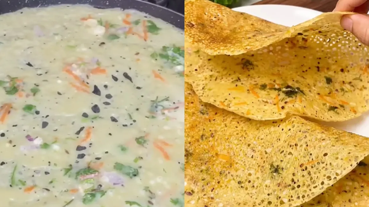 क्या आपने कभी बेसन का डोसा खाया है? अगर नहीं, तो कम से कम एक बार इस रेसिपी को जरूर ट्राई करके देखें। बेसन का डोसा बनाने में ज्यादा समय भी नहीं लगता है, तो आप ब्रेकफास्ट के लिए भी इस डिश को बना सकते हैं। आपकी जानकारी के लिए बता दें कि बेसन का डोसा बनाने के लिए हाफ कप बेसन, हाफ कप पिसी हई सूजी, 2 कप पानी, 2 स्पून बारीक कटा हुआ प्याज, 2 स्पून बारीक कटी हुई गाजर, कद्दूकस किया हुआ आधा इंच अदरक का टुकड़ा, 2 बारीक कटी हुई लहसुन की कलियां, एक बारीक कटी हुई हरी मिर्च, थोड़ा सा फ्रेश धनिया, एक-चौथाई टेबल स्पून काली मिर्च पाउडर, एक चौथाई स्पून जीरा, नमक, एक स्पून नींबू का रस और तेल की जरूरत पड़ेगी।