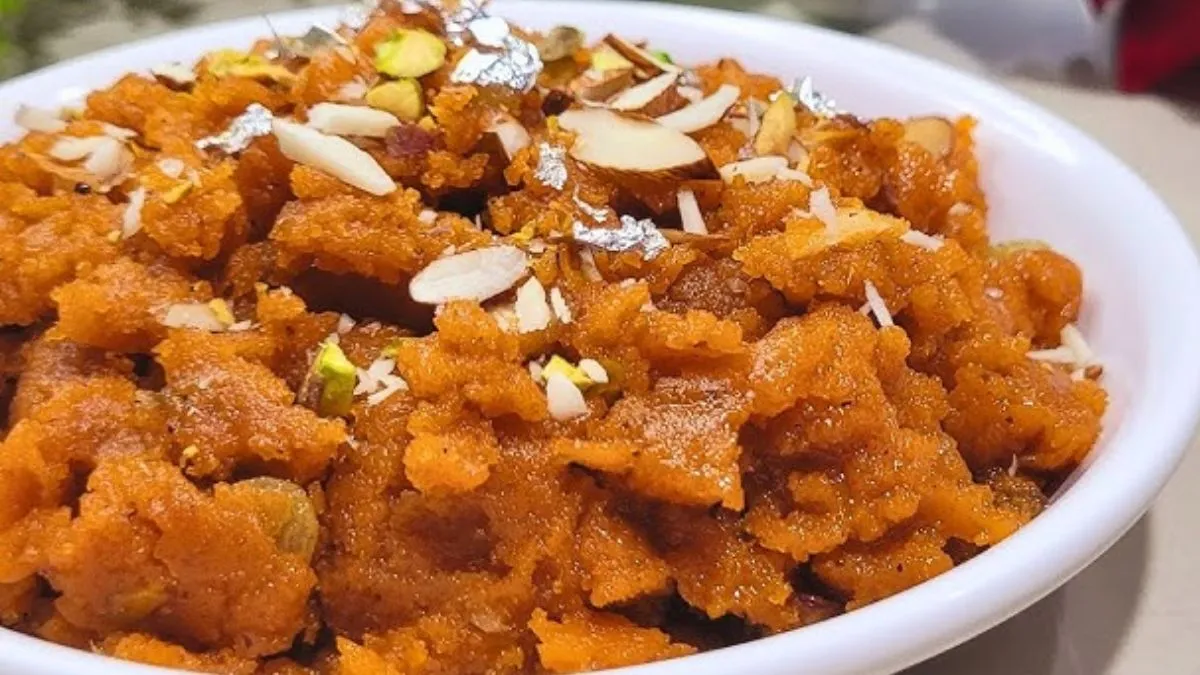 अंत में भुने हुए मेवे डालें और अच्छी तरह मिला लें। जब हलवा पूरी तरह से घी छोड़ने लगे, तो समझ जाइए कि यह तैयार है। फिर इसे सर्व करें।