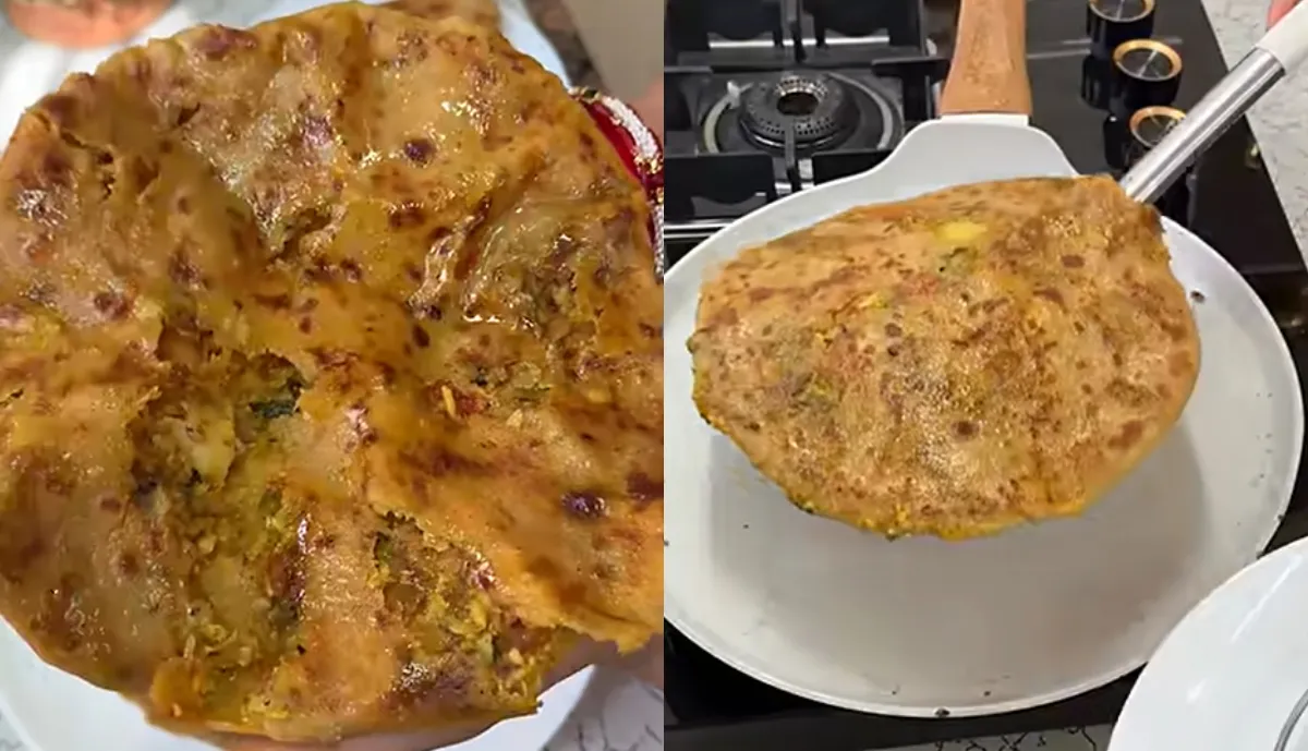 तीसरा स्टेप- गेहूं के आटे को नरम गूंथ लें और उससे एक मीडियम साइज की लोई लें। अब तैयार की गई स्टफिंग में से 2-3 चम्मच स्टफिंग अच्छी तरह से भर दें। पराठे को हल्के हाथों से बेलकर बड़ा करें और तवे पर डालकर दोनों तरफ से अच्छी तरह सेंक लें। पराठे के ऊपर बटर लगाकर गर्मागरम सर्व करें।