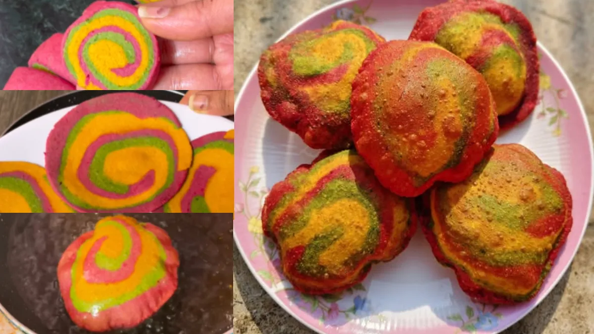 बच्चों को रंग बिरंगी चीजें बहुत पसंद आती हैं। कलरफुल खाना भी बच्चों को अट्रैक्ट करता है। अगर आपका बच्चा खाने में नखरे करता है और हरी सब्जी खाने में परेशान करता है तो उसे रेनबो पूरियां बनाकर खिला सकते हैं। इन दिनों हरी सब्जियां खूब मिल रही हैं। आप बच्चों को पीली, लाल और हरी पूरियां बनाकर खिलाएं। इससे चुकंदर, पालक मेथी और हल्दी के गुण भी मिल जाएंगे और बच्चे इन पूरियों को स्वाद लेकर खाएंगे। स्कूल के टिफिन में भी रेनबो पूरी बनाकर दे सकते हैं। यकीन मानिए बच्चा पूरा टिफिन साफ करके आएगा। फटाफट नोट कर लें रेनबो पूरी की ये आसान रेसिपी।
