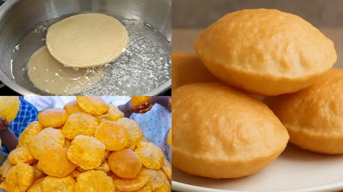 दूसरा स्टेप: अब तय समय के बाद आटे की लोइयां बनाएं और उन्हें बेलकर पूड़ियां तैयार कर लें। बचे हुए आटे से भी इसी तरह पूड़ियां बना लें। अब गैस ऑन करें और एक बड़ी कड़ाही में तेल की जगह आधा कड़ाही पानी डालें। जब पानी में उबाल आने लगे, तो उसमें धीरे-धीरे पूड़ियां डालें। पूरियों को पानी में लगभग 2 से 3 मिनट तक तब तक पकाएँ जब तक वे पानी के ऊपर तैरने न लगें। सभी पूड़ियों को इसी तरह पानी में उबाल लें और फिर बाहर निकाल लें।