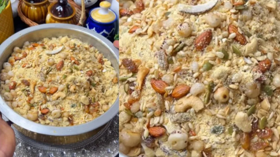 मीठा खाने के शौकीन हैं तो आपको ये हेल्दी रेसिपी अपनी डाइट में जरूर शामिल करनी चाहिए। भुने चने से इतनी टेस्टी पंजीरी बनती है जो मिठाइयों को भी मात दे देगी। इसमें आपको सारे नट्स, सीड्स और इम्यूनिटी बढ़ाने वाले तत्व मिलेंगे। सर्दी, जुकाम से लेकर रोग प्रतिरोधक क्षमता बढ़ाने तक और जोड़ों के दर्द को दूर करने में भी ये पंजीरी कमाल का काम करती है। इस हेल्दी रेसिपी को कमजोर रोग प्रतिरोधक क्षमता वाले जरूर खाएं। खास बात ये है कि इसे बनाने में सिर्फ 15-20 मिनट का समय लगेगा। फटाफट नोट कर लें भुने चने की पंजीरी बनाने की रेसिपी।
