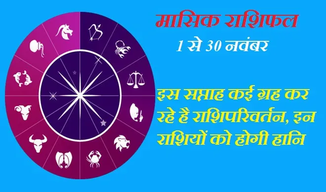 धर्म डेस्क: नवंबर माह की शुरुआत हो गई है। इस माह दो ग्रह राशिपरिवर्तन कर रहे है। जिसके कारण हर राशि क जातकों पर थोड़ा-थो़ड़ा प्रभाव पड़ेगा। इस माह बुध वृश्चिक राशि पर प्रवेश किया। इसके साथ ही शुक्र तुला राशि पर प्रवेश कर रहा है। इसके प्रभाव से कुछ राशियों के लिए अच्छा, तो कुछ राशियों के लिए हानिकारक साबित हो सकता है।