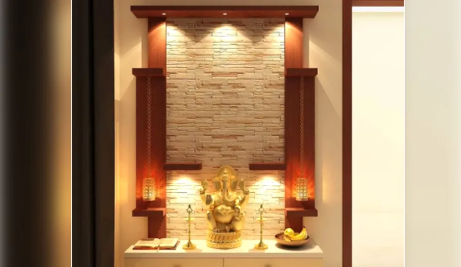 वास्तु के अनुसार पूजा घर की दिवारों पर हल्के पीले रंग को सबसे शुभ माना जाता है। इसके अलावा आप लाल, गेरुआ या केसरिया रंग भी करवा सकते हैं। और फर्श के लिए सफेद रंग के पत्थर का चुनाव करना बेहतर होता है।