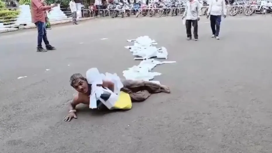 मध्य प्रदेश के नीमच में भ्रष्टाचार के खिलाफ जांच की मांग के हजारों आवेदन और सबूतों के दस्तावेज देने के बाद भी कोई कार्रवाई नहीं होता देख गांव के एक शख्स ने इस बार अफसरशाही और सत्ता को जगाने का अनोखा तरीका अपनाया। शिकायतकर्ता ने आवेदनों और सबूतों के कागजों की लंबी माला खुद पर लपेटकर जमीन पर रेंगता हुआ कलेक्ट्रेट पहुंचा, जहां भ्रष्टाचार के अजगर के अंत के लिए नवागत कलेक्टर से उसने जांच और सख्त कारवाई की मांग की।