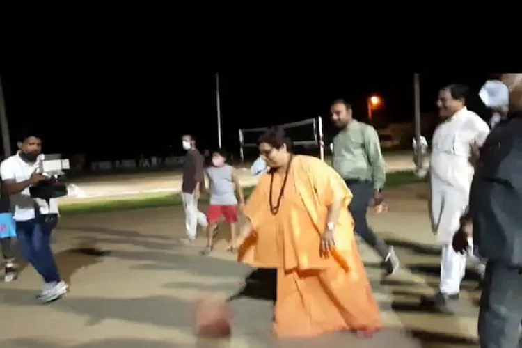 भोपाल: मध्य प्रदेश के भोपाल संसदीय क्षेत्र से भाजपा की सांसद प्रज्ञा ठाकुर का बास्केटबॉल खेलते सोशल मीडिया पर वायरल हुए वीडियो पर कांग्रेस ने तंज कसा है। सेाशल मीडिया पर एक वीडियो वायरल हो रहा है जिसमें प्रज्ञा ठाकुर बास्केटबॉल खेल रही हैं। वो बॉल को उछालते हुए बास्केट करती हैं जिसमें उन्हें सफलता भी मिलती है। इस वीडियो में उनका अंदाज एक खिलाड़ी की तरह ही हैं। वे भगवा वस्त्र पहने है और बास्केट बॉल खेल रही हैं।