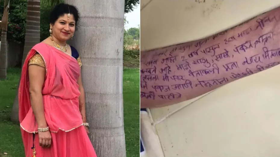 मध्य प्रदेश के इंदौर में खुदकुशी का एक हैरान कर देने वाला मामला सामने आया है। यहां एक महिला ने अपने पति के अफेयर से तंग आकर फांसी लगा ली। सुसाइड करने से पहले उसने अपने साथ हो रही प्रताड़ना की पूरी कहानी खुद बताई है। महिला ने अपने दोनों हाथों में मराठी में सुसाइड नोट लिखा, जिसमें पति और उसकी प्रेमी पर प्रताड़ना का आरोप लगाया है। पुलिस ने पति और उसकी प्रेमिका को गिरफ्तार कर लिया है।