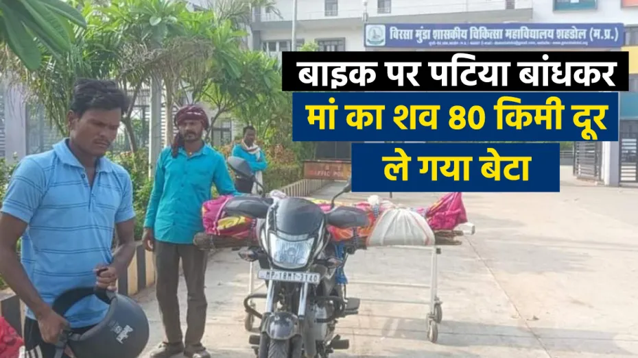 दरअसल, शहडोल के करीबी जिले अनूपपुर के गोंडारु गांव की रहने वाली जय मंत्री यादव को सीने में दर्द हुआ तो उसके परिजन शहडोल लेकर आए, जिला अस्पताल में उसका इलाज चला। लेकिन वहां उसकी हालत बिगड़ी, तो शनिवार को मेडिकल कॉलेज में रेफर कर दिया गया। उपचार के दौरान उसकी मौत हो गई, मौत के बाद मेडिकल कॉलेज में शव वाहन नहीं मिला और प्राइवेट वाहन वाले ने जितनी रकम मांगी उतनी उसके परिजनों के पास नहीं थी, तो लाचार बेटा अपनी मां के शव को मोटर साइकिल पर बांधकर 80 किलोमीटर दूर अपने गांव ले गया।