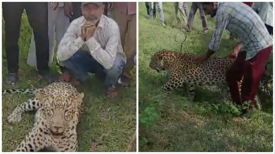 बीमार तेंदुए को देख दंग रह गए लोग