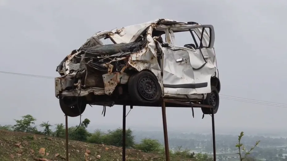 जागरुक करने के लिए टांग दिए एक्सीडेंटल वाहन