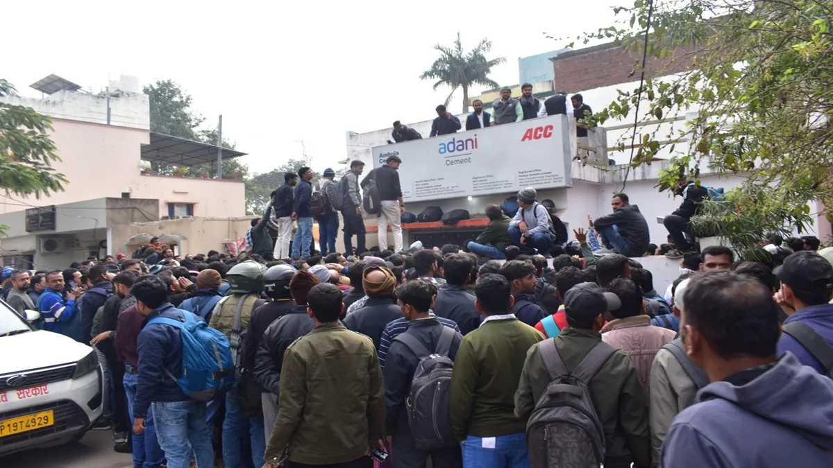 स्थिति की गंभीरता को देखते हुए स्थानीय निवासियों ने पुलिस को सूचना दी, लेकिन मौके पर पहुंची पुलिस भी इतनी भारी भीड़ को नियंत्रित करने में असहाय नजर आई। किसी भी अप्रिय घटना की आशंका पूरे समय बनी रही। लंबे समय तक इंतजार और अव्यवस्था से नाराज कुछ युवाओं ने खतरनाक कदम उठा लिया। कई युवक बाउंड्री वॉल पर चढ़ गए, जबकि कुछ ने पास की इमारत का सहारा लेकर सीमेंट कंपनी के कार्यालय की छत से अंदर कूदने की कोशिश की। इस दौरान बड़ा हादसा होने से बाल-बाल बचा।