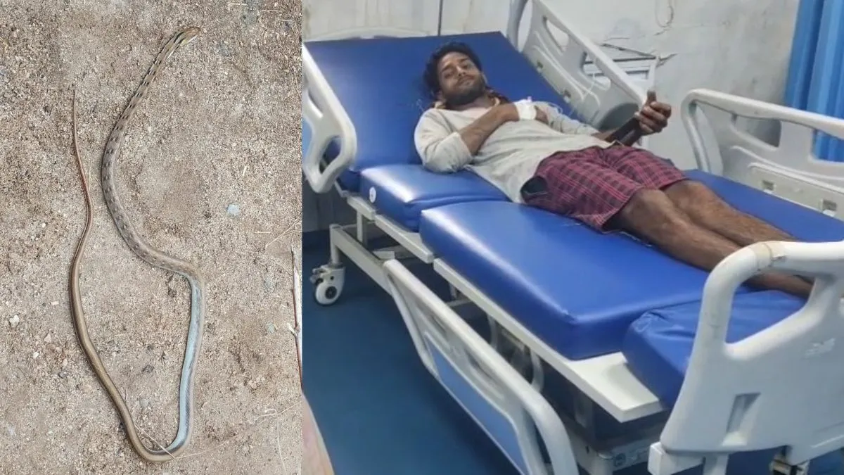 जानकारी के मुताबिक ग्रामीण थाना क्षेत्र के खुड़सोड़ी निवासी 25 वर्षीय सचिन कार मैकेनिक है। सचिन अपने खेत गया हुआ था। खेत में काम करने के दौरान उसे सांप ने पैर में डंस लिया। सांप ने सचिन के बाएं पैर पर डंसा, लेकिन कुछ ही पल में वह सांप तड़प-तड़पकर मर गया। इस पूरे मामले की जानकारी जब सचिन के परिजनों को लगी, तो वह सचिन के साथ-साथ उस मरे हुए सांप को लेकर जिला अस्पताल पहुंच गए। यहां चिकित्सकों ने सांप को बाहर फेंकवा दिया और सचिन को उपचार के लिए जिला अस्पताल में भर्ती कराया है।