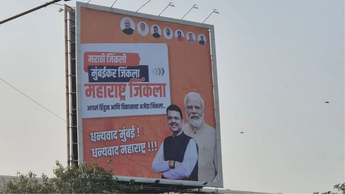 बीजेपी की ओर से लगाए गए इन होर्डिंग्स पर लिखा है, "मराठी जीती, मुंबईकर जीता, महाराष्ट्र जीता। हिंदुत्व और विकास का एजेंडा जीता। धन्यवाद मुंबई!"