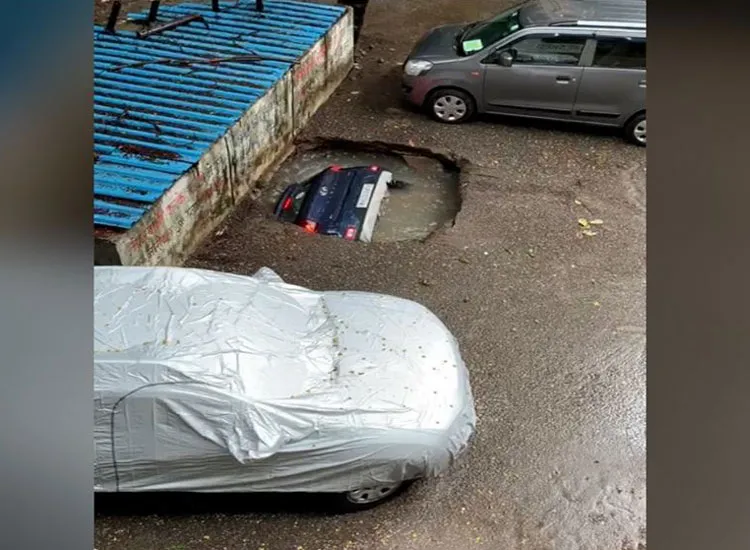 मुम्बई: मुम्बई के घाटकोपर वेस्ट की एक सोसाइटी में एक बड़ी अजीबोगरीब घटना घटी। इसी सोसाइटी में रहने वाले किरण दोषी ने यह सोचकर अपनी कार रात में सोसाइटी के अंदर पार्क की होगी कि वह फिर सुबह उस पर सवार होकर काम पर जाएंगे लेकिन जब वह सुबह वहां पहुंचे तो कार का कुछ अता-पता नहीं था। तो क्या कार चोरी हो गई? नहीं-कार जहां खड़ी थी, वहीं धरती में समा गई। यह अजीबोगरीब घटना सीसीटीवी में कैद हो गई। अगर ऐसा नहीं हुआ होता तो अंदाजा लगाना मुश्किल था कि कार गई कहां। वह जहां खड़ी थी, वहां एक बड़ा गड्ढा था लेकिन कार का कोई अता-पता नहीं था।