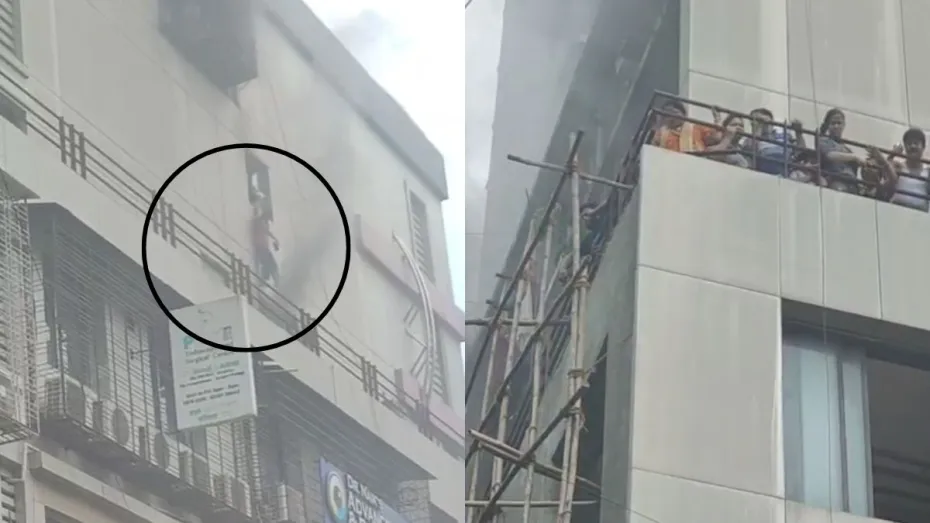 बिल्डिंग से कूदते नजर आए लोग