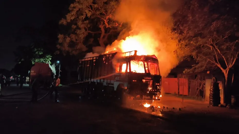 महाराष्ट्र के जलगाव के पालधी में गुस्साई भीड़ ने गोमांस ले जाने के शक में एक ट्रक में आग लगा दी। इस घटना को लेकर पालधी गांव समेत इलाके में गुरुवार देर रात तक तनाव बना रहा। गुरुवार रात करीब 9 बजे बंभौरी एसएसबीटी कॉलेज के पास पेट्रोल पंप पर एक ट्रक रुका। दुर्गंध आने पर कुछ युवकों को शक हुआ। फिर उन्होंने पूछताछ शुरू की, तो ट्रक ड्राइवर ने बेतरतीब तरीके से जवाब दिए। इसके बाद पेट्रोल पंप के कर्मचारियों ने युवकों के साथ थाने में फोन कर जानकारी दी।