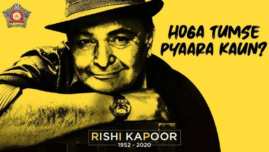 बॉलीवुड के सदाबहार हीरो ऋषि कपूर के निधन से पूरा देश स्तब्ध है। मुंबई के अस्पताल में ऋषि कपूर की मौत की खबर सामने आने के बाद से बॉलीवुड लेकर हर ओर शोक का माहौल है। रोमांटिक हीरो की मृत्यु पर प्रधानमंत्री नरेंद्र मोदी से राजनीति और बॉलीवुड की हस्तियों ने उन्हें श्रद्धांजलि दी है। इसी बीच मुंबई पुलिस ने भी देश के इस चहेते हीरो को अपनी ओर से एक खास श्रद्धांजलि दी है।