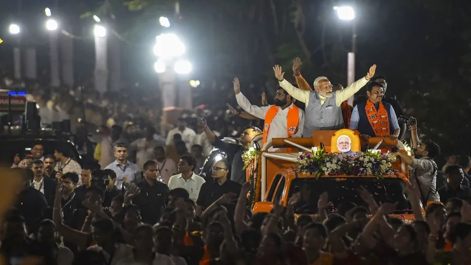 प्रधानमंत्री नरेन्द्र मोदी मुंबई महानगर के अंतर्गत आने वाली लोकसभा सीट से लड़ रहे भाजपा उम्मीदवारों के समर्थन में बुधवार शाम को मुंबई में विशाल रोड शो किया। प्रधानमंत्री का अभिवादन करने के लिए बड़ी संख्या में लोग उत्सुकता से सड़क के किनारे खड़े थे। प्रधानमंत्री का यह रोड शो 20 मई को मुंबई की छह लोकसभा सीट सहित महाराष्ट्र की कुल 13 सीट पर होने वाले मतदान से पहले हुआ। महाराष्ट्र में पांचवें चरण के साथ ही चुनाव संपन्न हो जाएगा। भाजपा के स्टार प्रचारक ने उत्तर पूर्व मुंबई में घाटकोपर (पश्चिम) के अशोक सिल्क मिल से पुलिस की कड़ी सुरक्षा के बीच शाम करीब सात बजे अपना रोड शो शुरू किया और शहर के विभिन्न हिस्से से होते हुए घाटकोपर(पूर्व) के पार्श्वनाथ चौक पर एक घंटे से अधिक समय के बाद समाप्त हुआ।