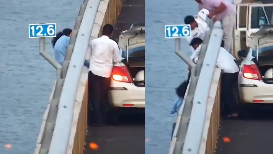 महाराष्ट्र में मुंबई और नवी मुंबई को जोड़ने वाले अटल सेतु पर बीते कुछ दिनों से आत्महत्या करने या आत्महत्या की कोशिश के कई मामले सामने आ रहे हैं। एक बार फिर से ऐसी ही एक घटना देखने को मिली है। अटल सेतु सी लिंक पर आत्महत्या की कोशिश कर रही महिला को बचाने का सनसनीखेज वीडियो सामने आया है। हालांकि, पुलिस ने बहादुरी दिखाते हुए महिला की जान को बचा लिया है। आइए जानते हैं ये पूरा मामला।