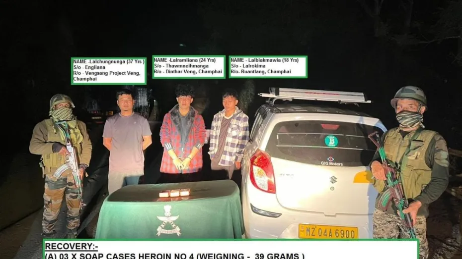 मिजोरम में नशीले पदार्थों की तस्कारी का मामला थमने का नाम नहीं ले रहा है। असम राइफल्स ने शुक्रवार को बताया कि मिजोरम में 42.3 लाख रुपये मूल्य की हेरोइन और मारिजुआना (गांजा) बरामद किया गया है। मिजोरम पुलिस के साथ मिलकर असम राइफल्स ने चंफाई जिले के सामान्य क्षेत्र मेलबुक रोड जंक्शन और पुराने वैकथावलंग से हेरोइन और मारिजुआना बरामद किया है। इसके साथ पुलिस ने नशीले पदार्थो की तस्करी के आरोप में चार लोगों को गिरफ्तार किया है। इनमें से एक म्यांमार का नागरिक है।