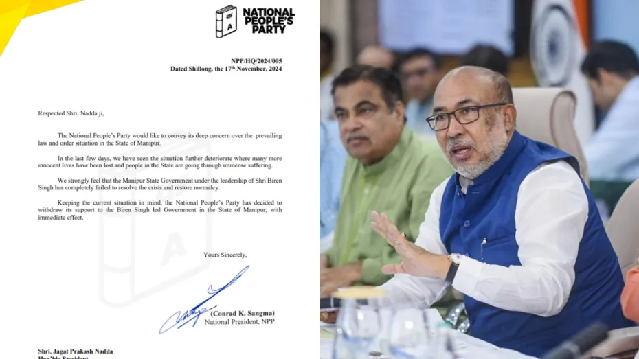 एनपीपी द्वारा जारी पत्र में कहा गया है, "हमें दृढ़ता से लगता है कि बीरेन सिंह के नेतृत्व में मणिपुर राज्य सरकार संकट को हल करने और सामान्य स्थिति बहाल करने में पूरी तरह विफल रही है। वर्तमान स्थिति को ध्यान में रखते हुए, नेशनल पीपुल्स पार्टी ने मणिपुर राज्य में बीरेन सिंह के नेतृत्व वाली सरकार से अपना समर्थन तत्काल प्रभाव से वापस लेने का निर्णय लिया है।" मणिपुर में एक बार फिर हिंसा भड़की हुई है। यहां पिछले साल मई के महीने से मैतेई और कुकी समुदाय के लोगों के बीच संघर्ष चल रहा है, जो एक बार फिर हिंसक रूप ले चुका है। तीन बच्चों और तीन महिलाओं की मौत के बाद यहां लगातार प्रदर्शन हो रहे हैं।